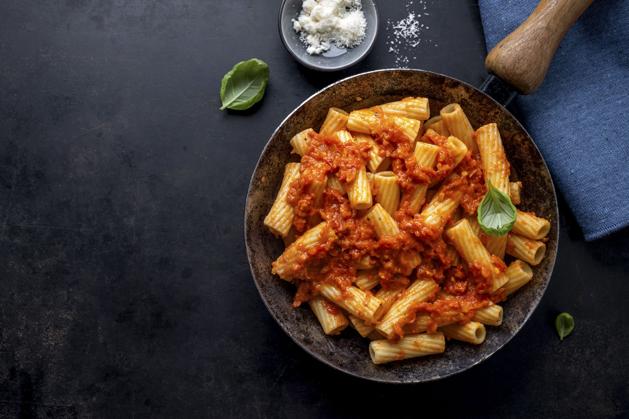 Tortiglioni Nudeln, Tomatensoße, Basilikum